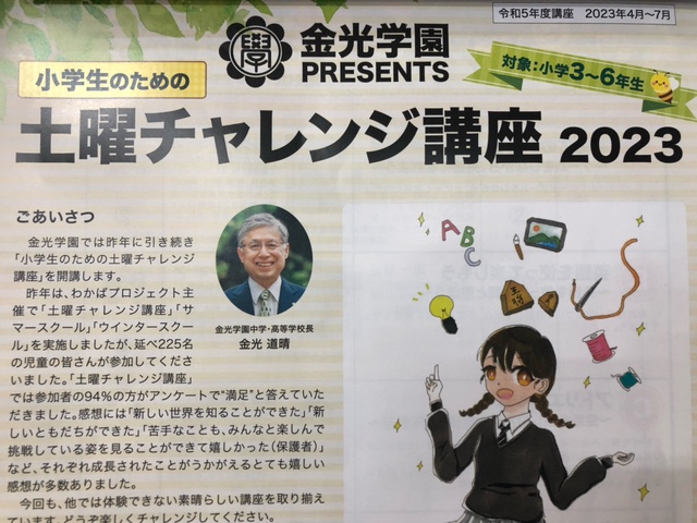 NEWS小学3~6年生対象金光学園わかばプロジェクト「土曜チャレンジ講座2023」お申込み受付中!!
