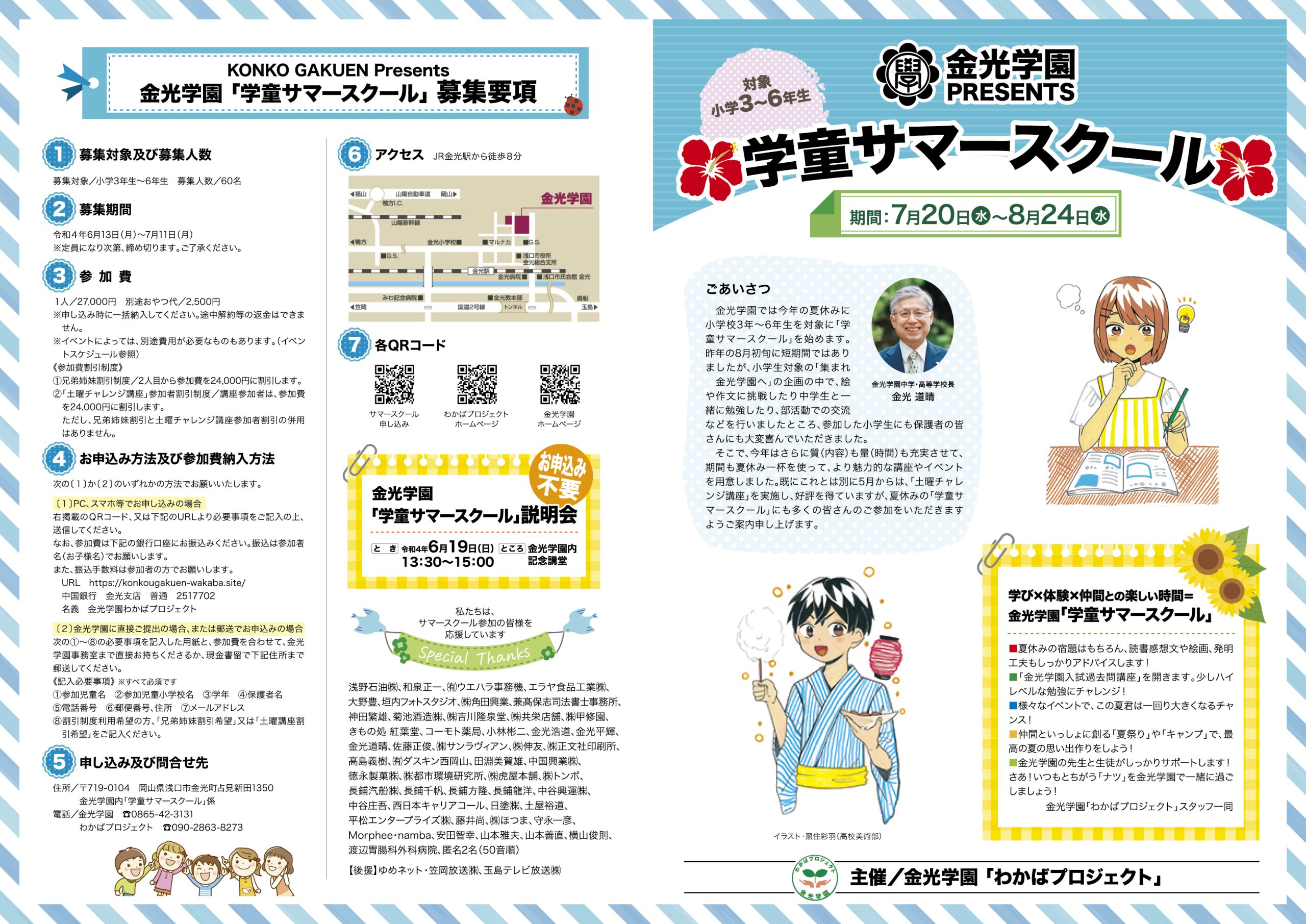 NEWS2022年夏休み金光学園「学童サマースクール」は、募集を終了いたしました。