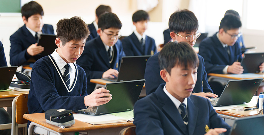 学習ソフト「スタディサプリ」を活用し、発展的学習や基礎的学習事項の復習に取り組んでいます。探究学習での「調べ学習」への活用も奨めています。