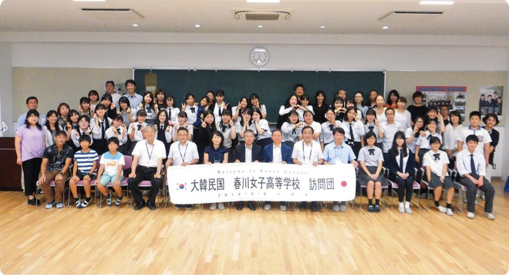 金光学園では、姉妹校との交換留学や海外研修、ALTによる指導など、海外の文化や言葉、人々との出会いの機会を設けています。グローバル社会に対応できる国際感覚と英語力を育み、グローバルリーダーとして活躍できる人材の育成に向けて、学園をあげて様々な取り組みを実施しています。