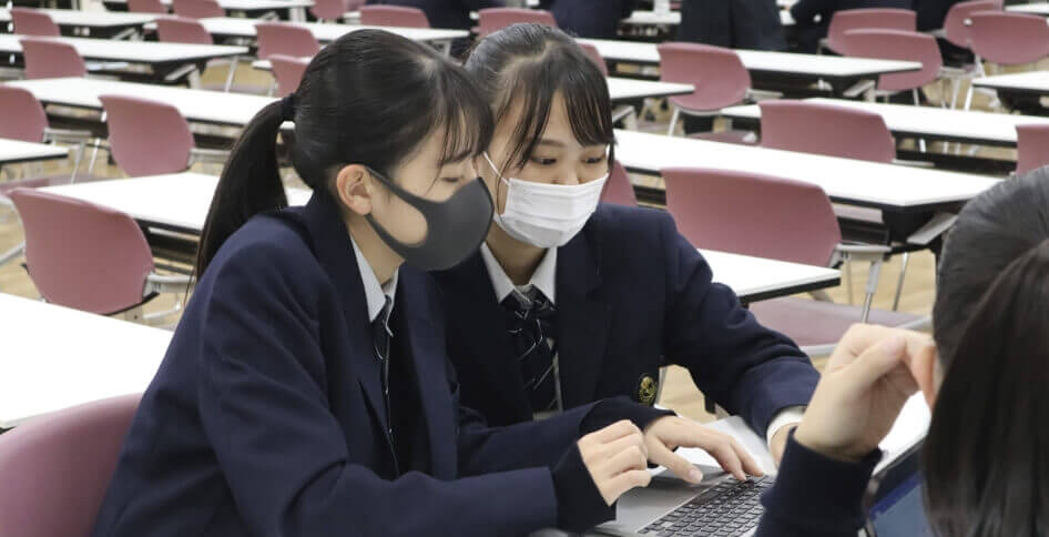 自分たちが暮らす地域の魅力を様々な視点から調べ、英語で発表します。また、県内の留学生を招いて交流会も実施。金光学園ならではのカリキュラムで、グローバルな視点と柔軟な思考を身につけます。