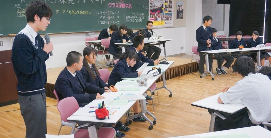 時事問題を論題として取り上げ、それぞれの生徒が積極的な姿勢でディベートに取り組み、深く議論・思考するカを身につけていきます。