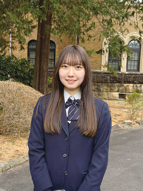 金光学園在学中の6年間、国際交流クラブに所属していました。コロナ禍で海外研修などができなかった期間も、クラブのメンバーや先生方と相談しながら国内外からの留学生との交流を続けることができました。いちばん印象に残っているのは、コロナ禍でアルバイトなどがなくなり生活が苦しくなった留学生たちに食糧支援をしたことです。「野菜や缶詰などの食べ物もうれしいけど、日本のコミュニティが留学生を支えてくれる気持ちがうれしい」と喜んでくれて、私もメンバーもとてもうれしかったです。これからも、金光学園で学んだ合言葉「人をたいせつに 自分をたいせつに 物をたいせつに」を実践していきたいです。
