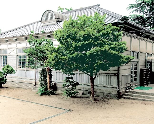 明治時代に建てられた総ヒノキづくりの講堂に、学園の歴史が感じられます。